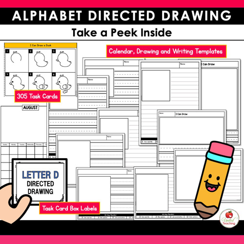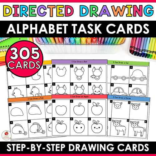 Make writing and drawing fun with this hands-on Alphabet Directed Drawing Task Cards Bundle! Featuring 305 how-to-draw task cards and matching writing pages, this comprehensive resource helps students strengthen fine motor skills, build drawing confidence, expand vocabulary, and practice sentence writing – all while reinforcing the alphabet and letter sounds.