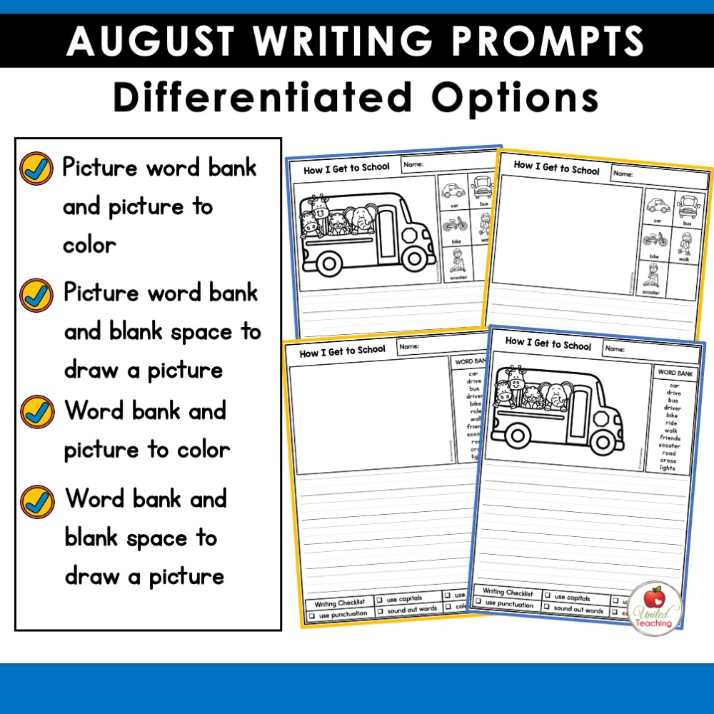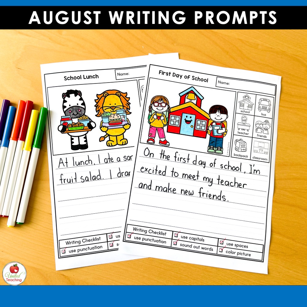 Whether you’re teaching kindergarten or early primary grades, these August writing prompts are a fun and effective way to build classroom community while supporting essential writing skills from day one!