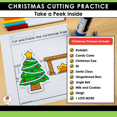 What’s Included in the Christmas Cut and Paste Worksheets Packet: