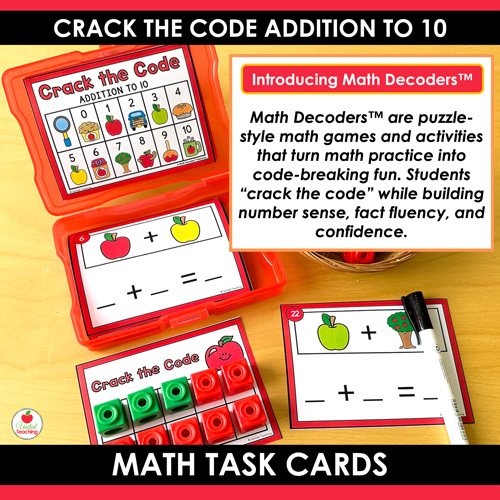 Math Decoders™ – Crack the Code Math Task Cards: Addition Within 10 Apple Theme
