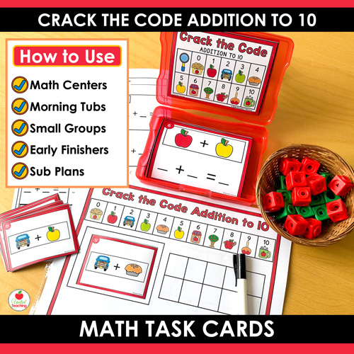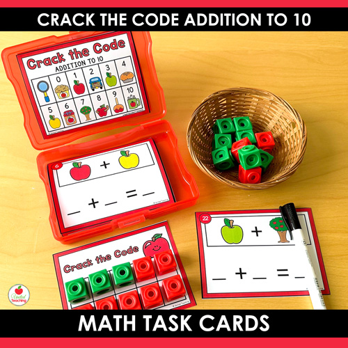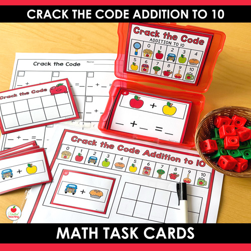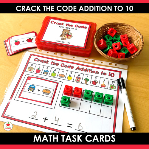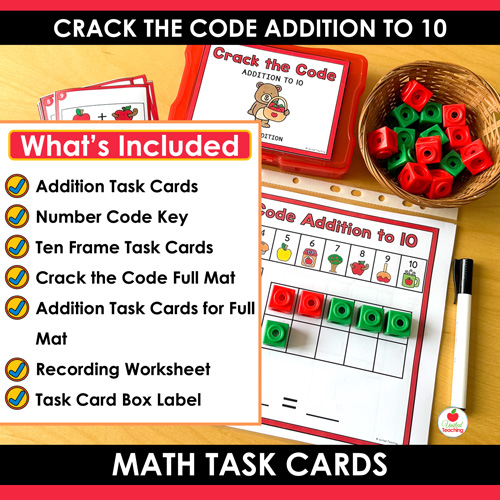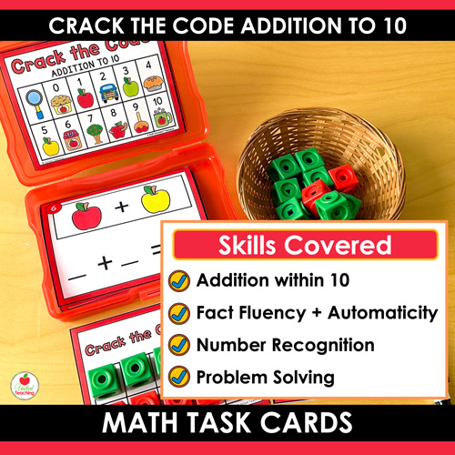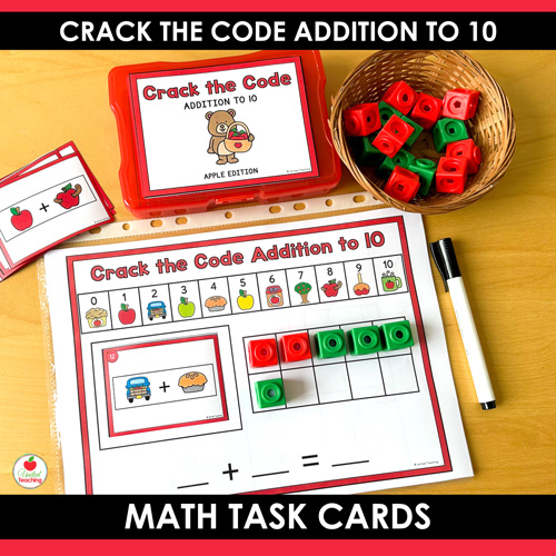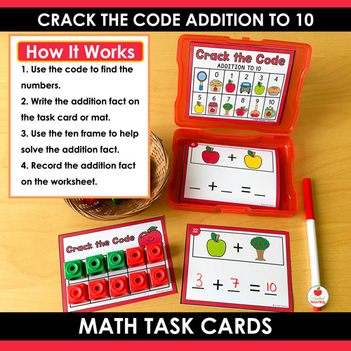 What’s Included in the Crack the Code Math Task Cards – Additiont to 10 Apple Theme: