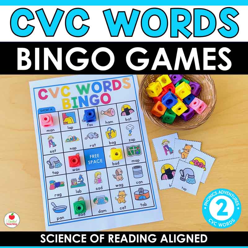 If you are teaching CVC words and want a whole-group or center game that keeps every student reading, these CVC Bingo sets give you games that target all short vowels.