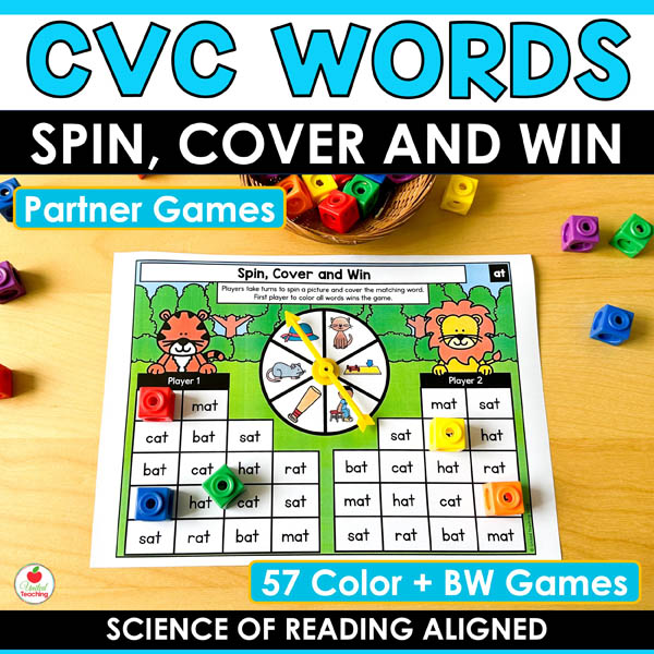 Stop searching for CVC games that actually keep students engaged. These CVC Words Spin Cover and Win Partner Games turn phonics practice into friendly competition while building real fluency with reading CVC words.