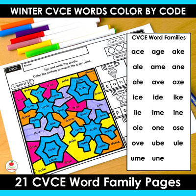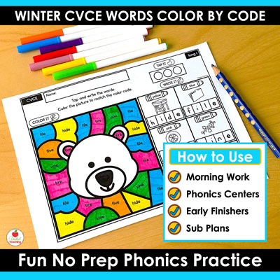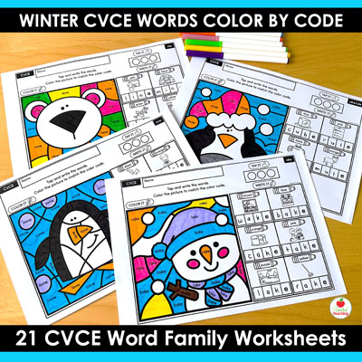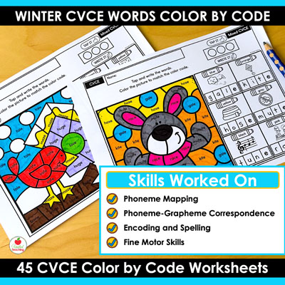Looking for a fun, structured way to practice phonics that aligns with the Science of Reading? The CVCE Words Winter Color by Code Worksheets Packet combines CVCE word mapping with engaging winter color by code activities. With 45 worksheets covering CVCE word families, long vowels, and mixed CVCE words, you’ll have everything you need to support reading fluency.