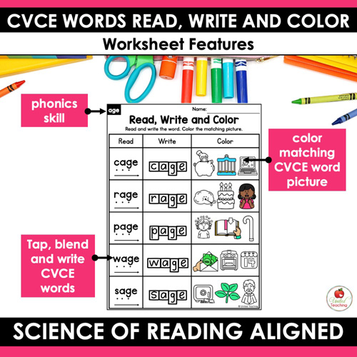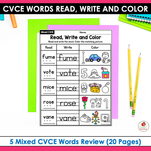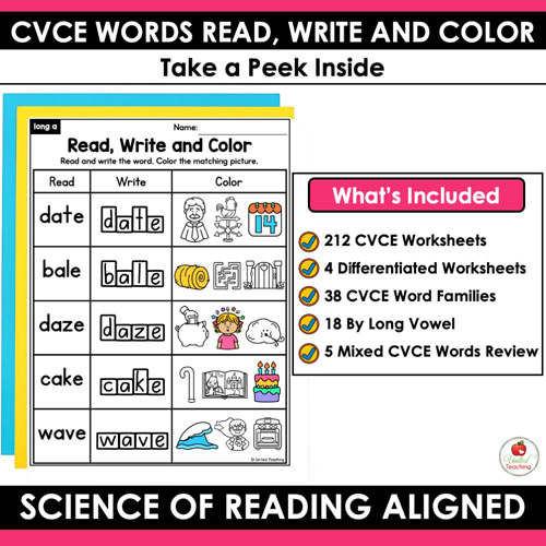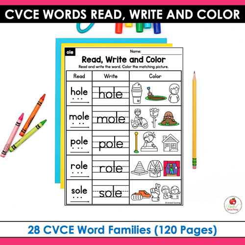 CVCE Read, Write, and Color Worksheets – Long Vowel Practice