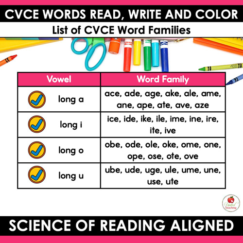 This comprehensive set includes 212 differentiated worksheets that cover CVCE word families, long vowel sounds, and mixed review activities. With clear visuals and consistent structure, your students can practice decoding and spelling long vowels with confidence.