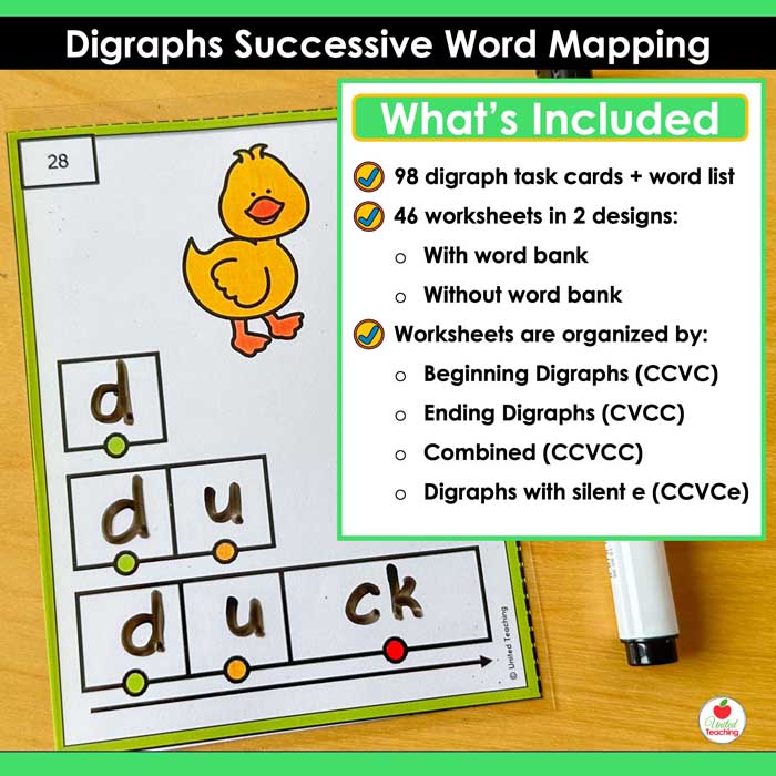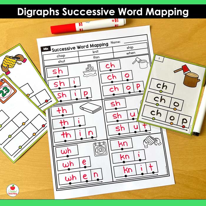 Digraphs Successive Word Mapping Task Cards and Worksheets