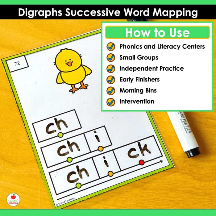 If you are teaching digraphs and want a systematic routine that helps students understand that two letters can represent one sound, this successive word mapping resource makes it easy to give students the scaffolded practice they need. The consistent structure works across beginning, ending, and combined digraph patterns, so students focus on the phonics skill rather than learning new activity formats.
