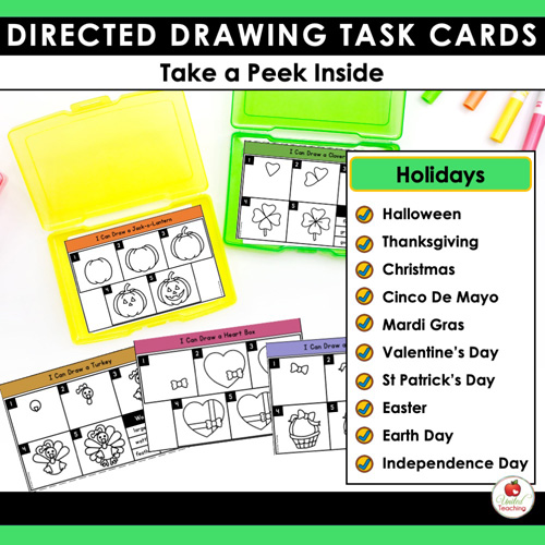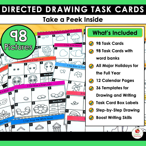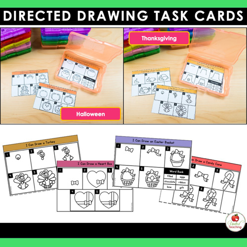 Bring creativity and seasonal fun into your classroom with the Directed Drawing Task Cards Holiday Bundle! Featuring 196 themed task cards and coordinating writing pages, this no-prep resource makes it easy to integrate art, writing, and fine motor skill development throughout the year.