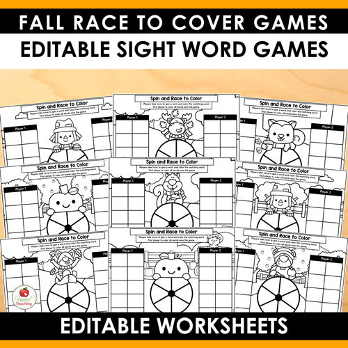 With the Spin and Race to Cover Editable Sight Words Partner Games, you’ll have a fun, flexible, and fully customizable tool to make sight word mastery more effective and engaging this season!