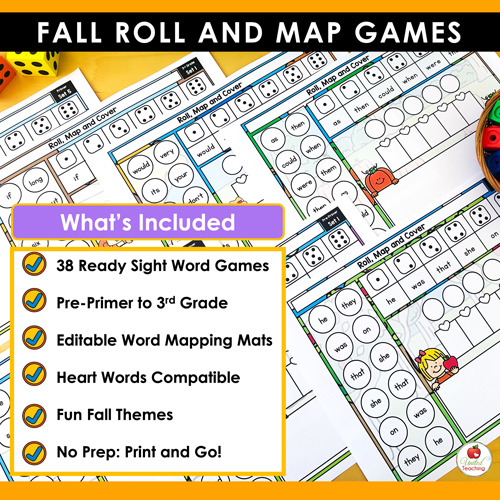 With the Fall Roll and Map Editable Sight Word Mapping Games, you’ll give students the tools to master high-frequency words through a structured and engaging routine. Whether you’re targeting traditional sight words or heart words, this resource makes word mapping fun, meaningful, and easy to differentiate!