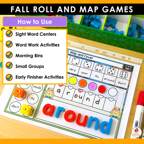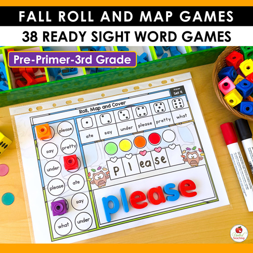 - 30 Fall-Themed Roll and Map Game Boards featuring sight words from: