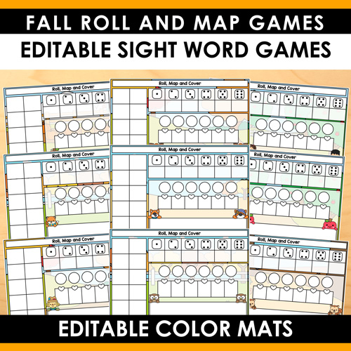 Fall Roll and Map Sight Word Mapping Games – Editable & Heart Word Compatible