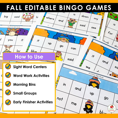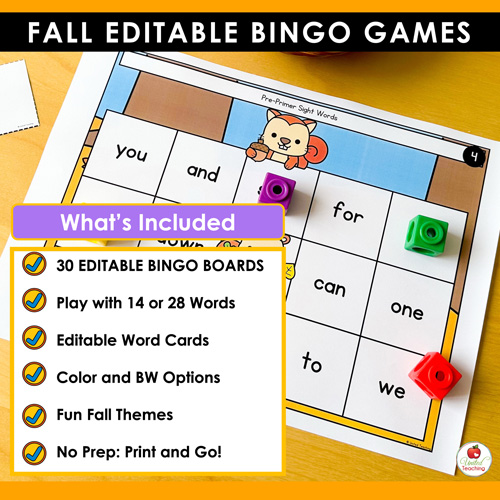 With the Fall Editable Sight Word Bingo Games, you’ll have a go-to activity that combines the fun of a seasonal game with the flexibility to support any learning objective. Customizable, low-prep, and student-approved—it’s the perfect addition to your fall classroom toolkit!