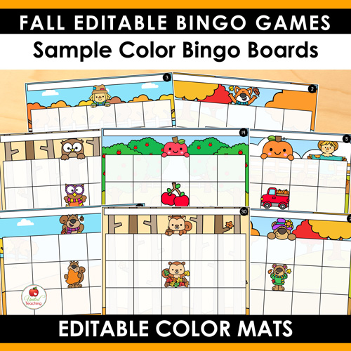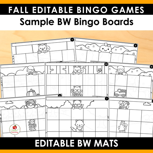 - 30 Editable Bingo Game Boards with fall-themed borders and 2 layouts based on number of words