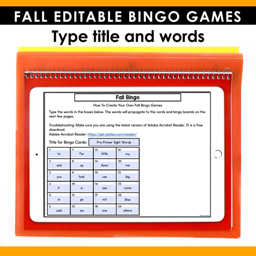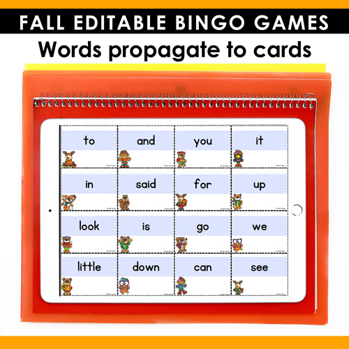 - Auto-Generated Word Calling Cards included for easy game play