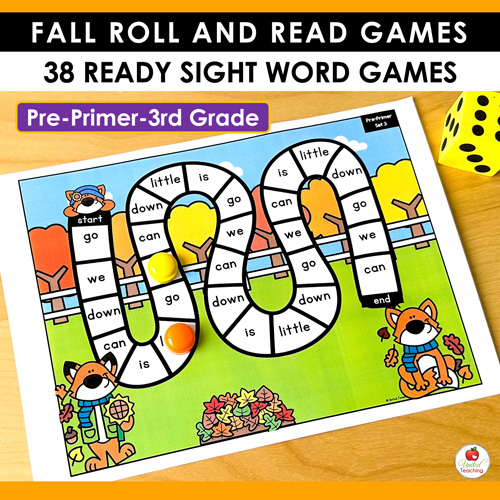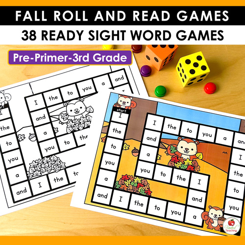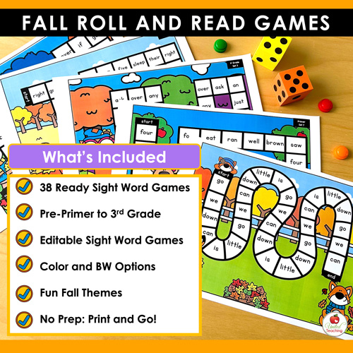 - 38 Fall-Themed Game Boards featuring sight words from: