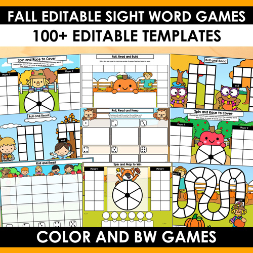 Fall Sight Words Editable Games Bundle