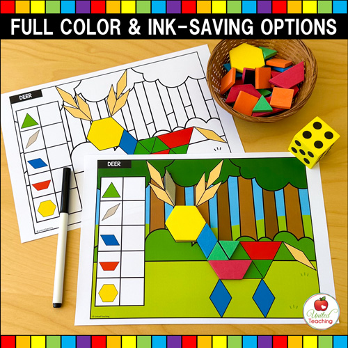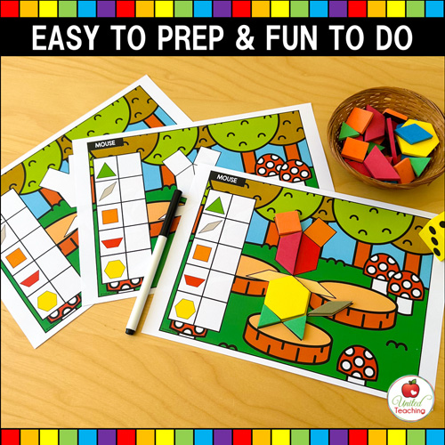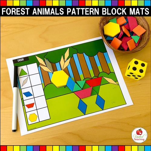 These Pattern Block Forest Animals Mats are a classroom favorite for building math confidence in a playful, low-prep way. Add them to your Fall Math Centers or Forest Animal Units to give your students a fun and educational way to explore shapes, counting, and creativity!