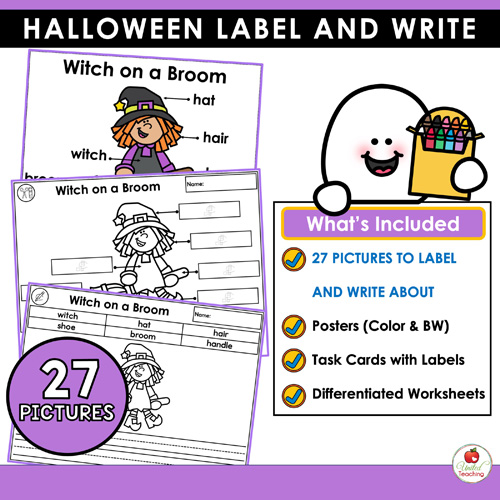 Halloween is the perfect time to spark creativity in young writers! With this Halloween Label and Write Packet, your students can explore spooky and fun themes while practicing labeling and writing skills. This resource gives children plenty of opportunities to build vocabulary, write sentences, and enjoy the season through colorful posters, task cards, and differentiated worksheets.