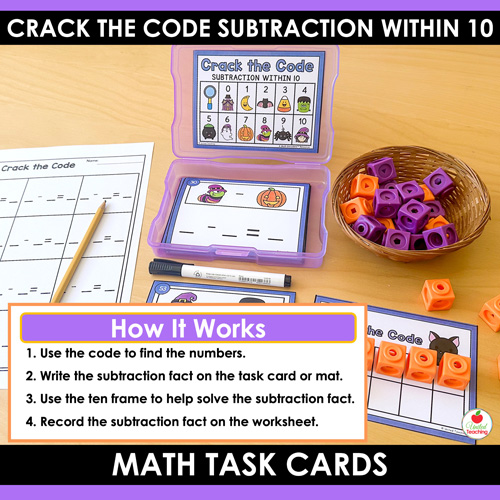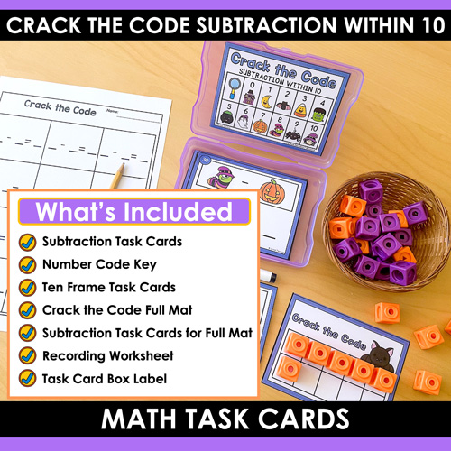 Give your students a fun way to practice subtraction this holiday with these Crack the Code Halloween Task Cards— part of the Math Decoders™ series.