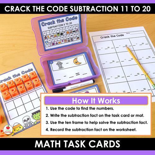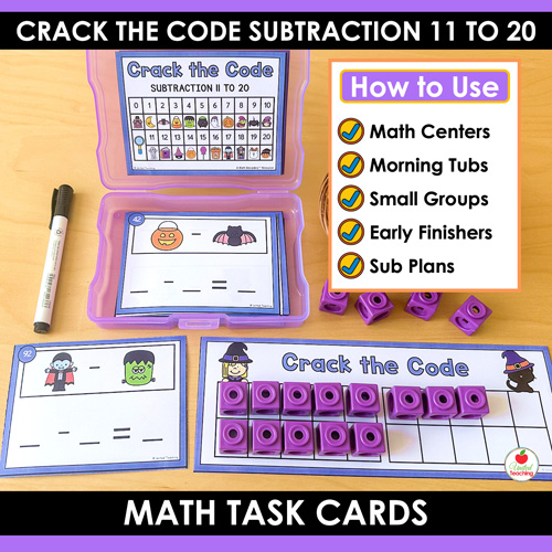 Give your students a fun way to practice subtraction facts 11–20 this Halloween with these Crack the Code Math Task Cards — part of the Math Decoders™ series.