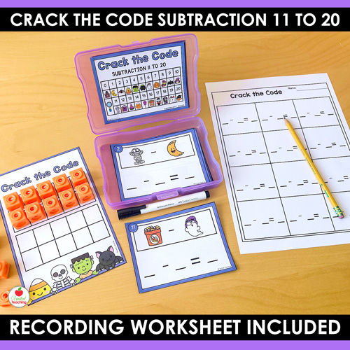 Math Decoders™ are puzzle-style math games that turn subtraction practice into code-breaking fun. In this Halloween themed set, students solve subtraction facts 11–20 by matching picture codes to numbers, completing the equation, and recording their answers. The consistent routine helps students build fluency, independence, and confidence while enjoying seasonal math practice.