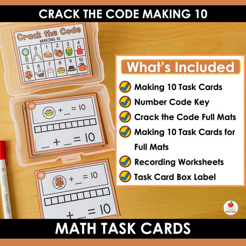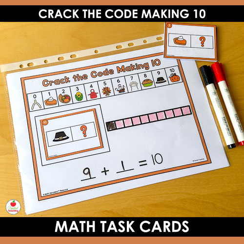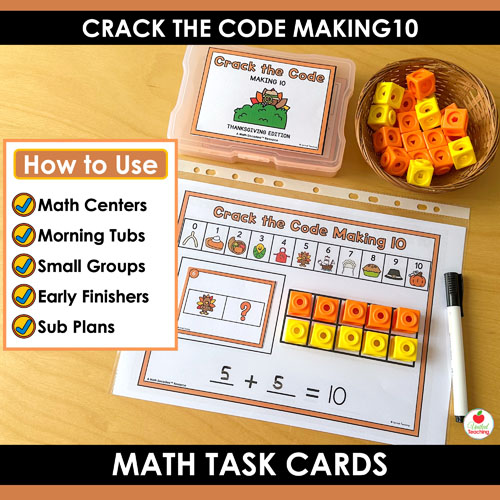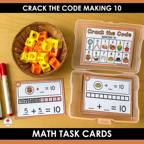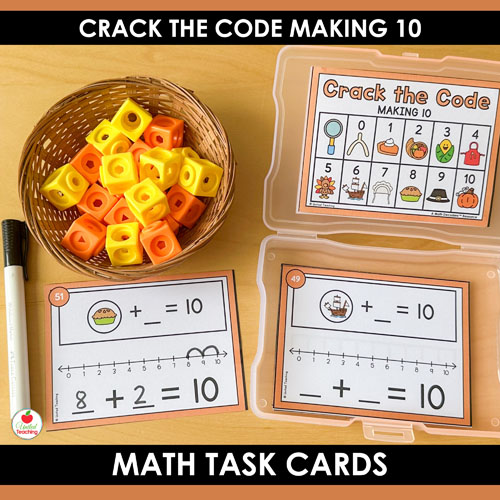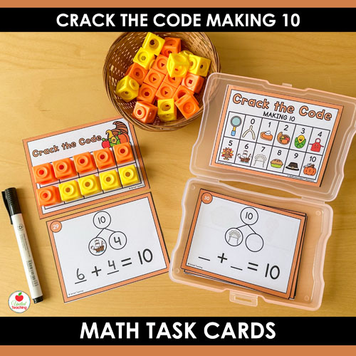 Bring seasonal fun to your math centers this fall while helping students master Friends of 10 with these Crack the Code Making 10 Task Cards — part of the Math Decoders™ series.