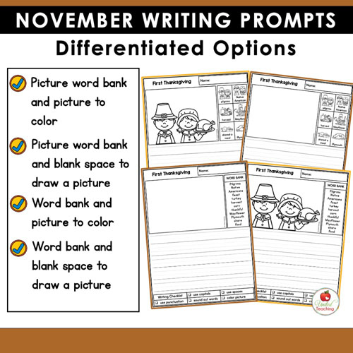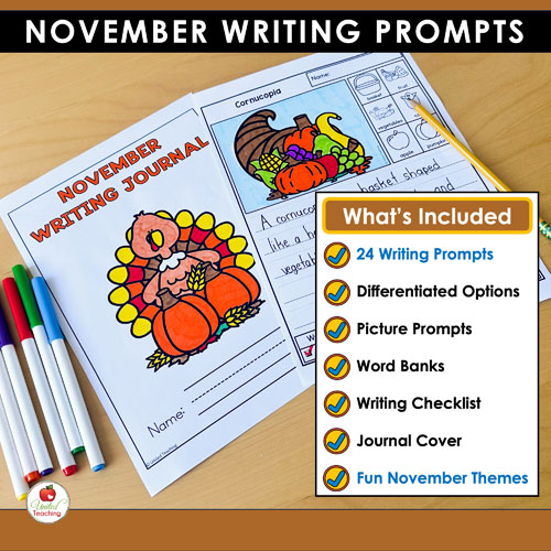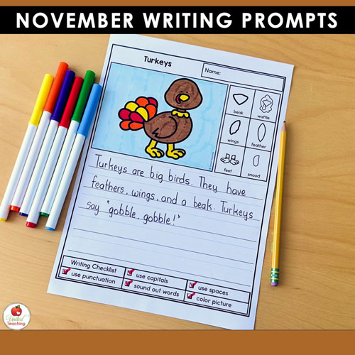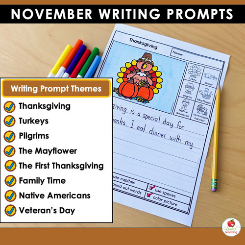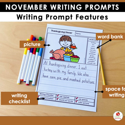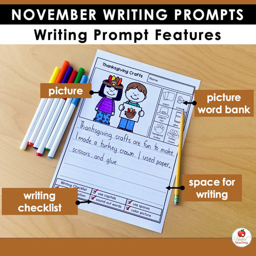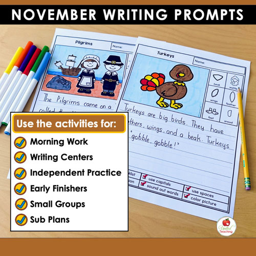 Whether you’re teaching kindergarten or early primary grades, these November writing prompts help students practice essential writing skills while reflecting on thankfulness, community, and history.
