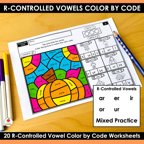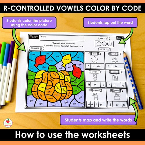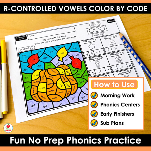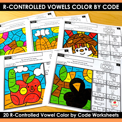 - Low Prep: Just print the r-controlled vowels color by code worksheets and go!