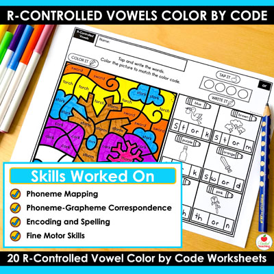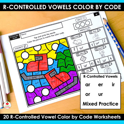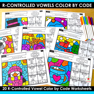 - Low Prep: Just print the r-controlled vowels color by code worksheets and go!