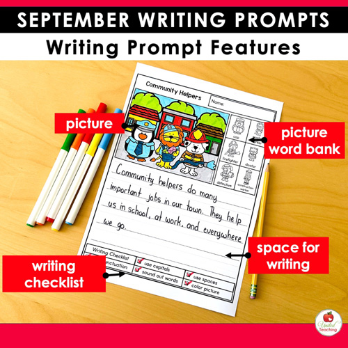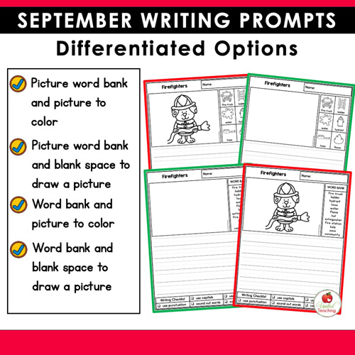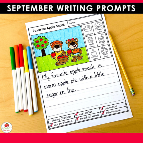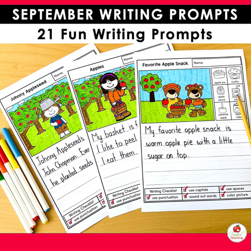 Welcome the new season with this set of 21 September writing prompts designed especially for kindergarten! With a mix of apple themes, fall fun, and community helpers, the no-prep September Writing Prompts Packet makes it easy to support narrative, opinion, and descriptive writing all month long. Whether you’re exploring Johnny Appleseed or learning about firefighters, these writing pages help young writers strengthen their skills while expressing their ideas.