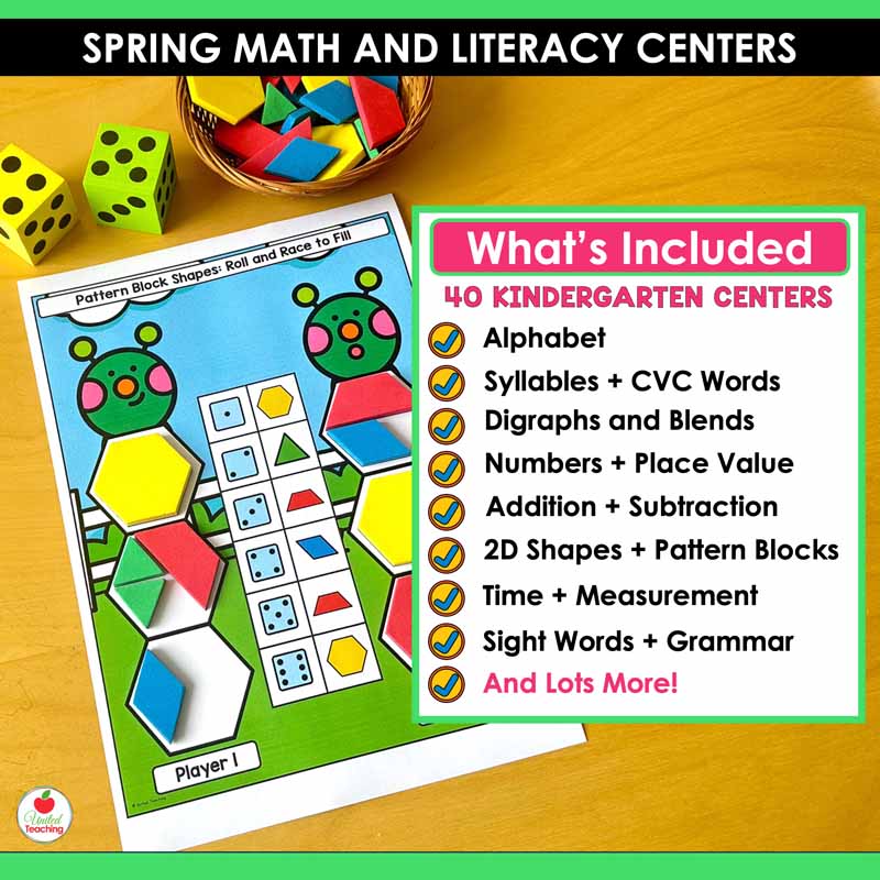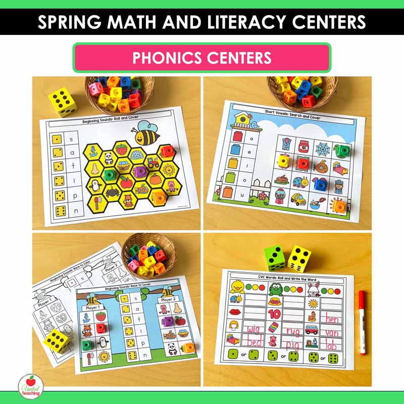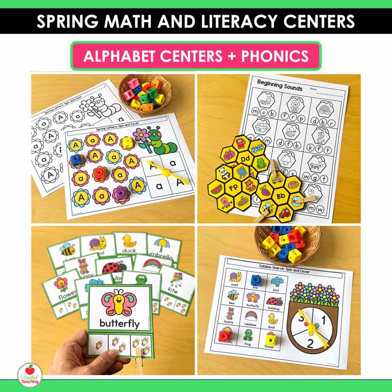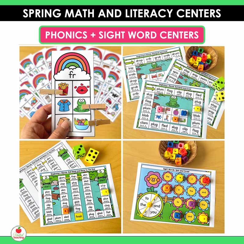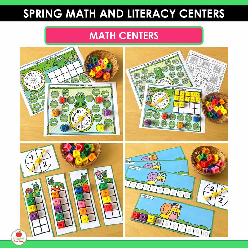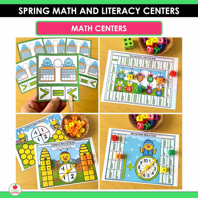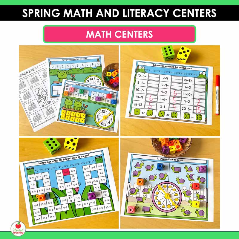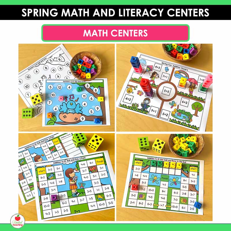 Make spring learning fun with these Spring Math and Literacy Centers for Kindergarten. This resource includes 40+ hands-on centers that keep students engaged while practicing essential literacy and math skills all season long.