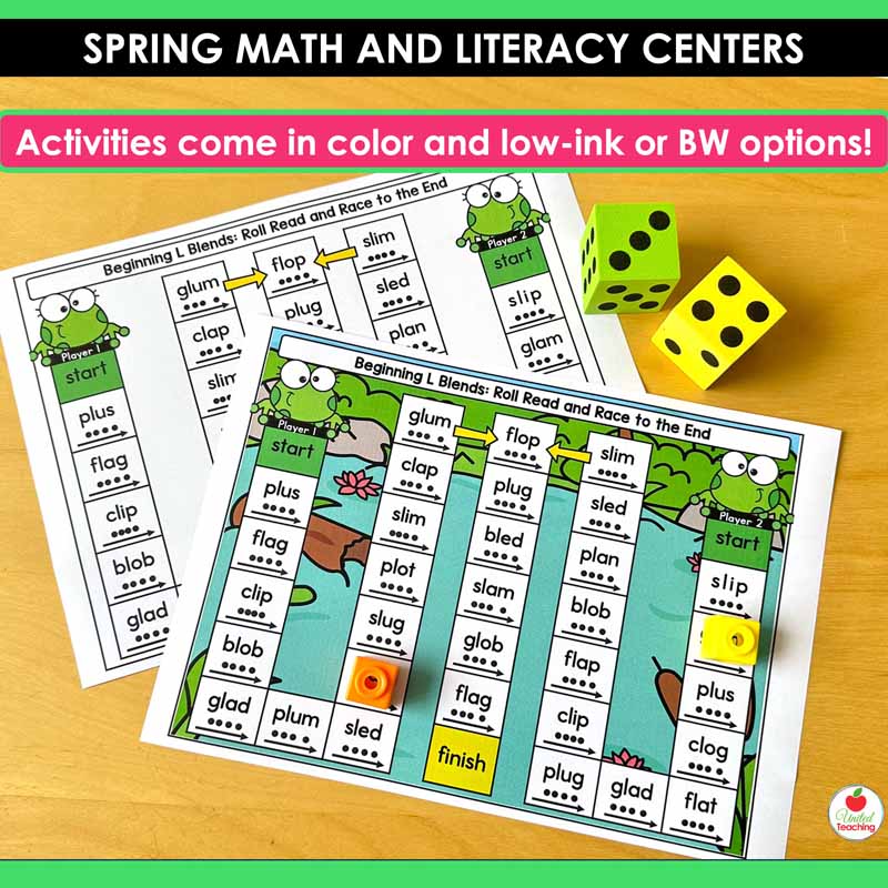 - Add simple manipulatives like dice, spinners, cubes, counters, or clothespins