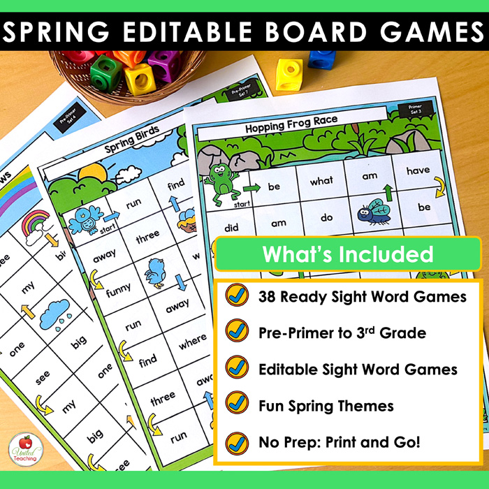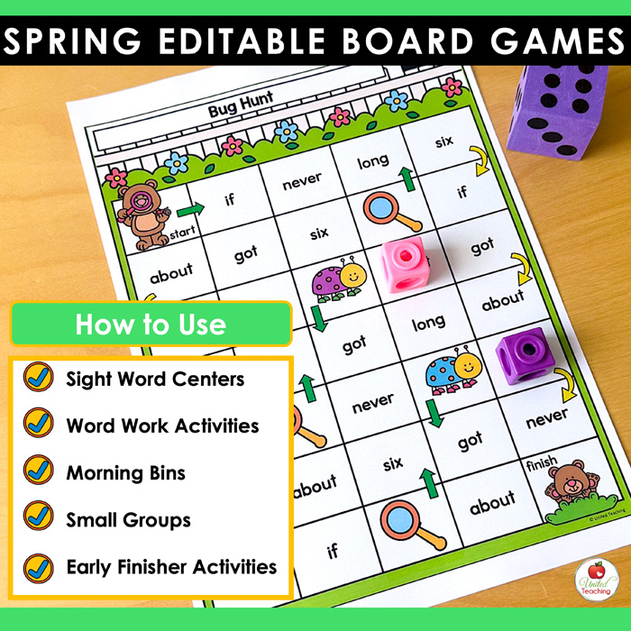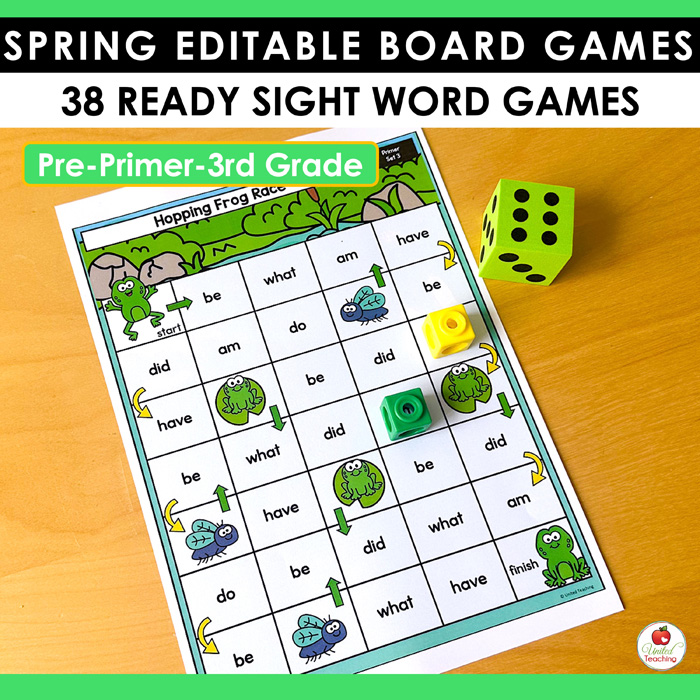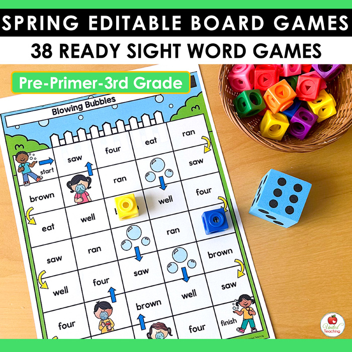 Give your sight word routine a spring refresh with these engaging, editable sight word games! Whether you’re using the ready-made boards or customizing your own, your students will love learning as they roll, read, and move their way to sight word mastery.