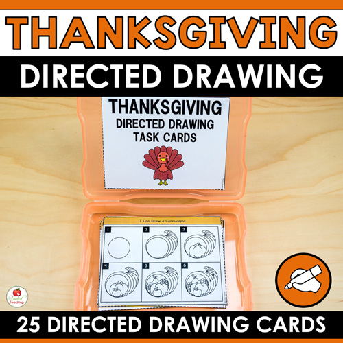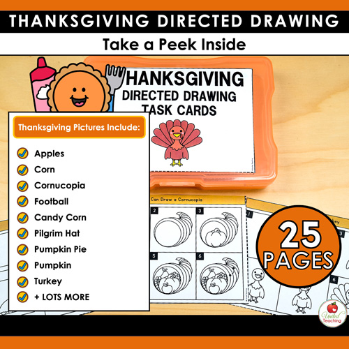 - 25 Thanksgiving directed drawing task cards with step-by-step drawing instruction