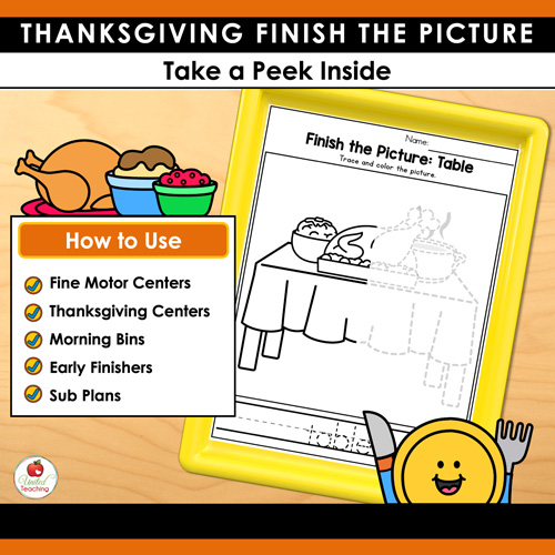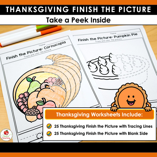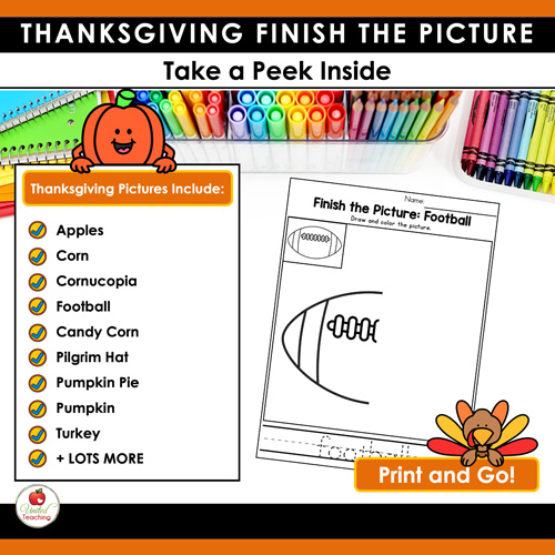 Bring festive fun into your classroom with these Thanksgiving finish the picture worksheets – perfect for building fine motor skills and Thanksgiving activities all in one resource.