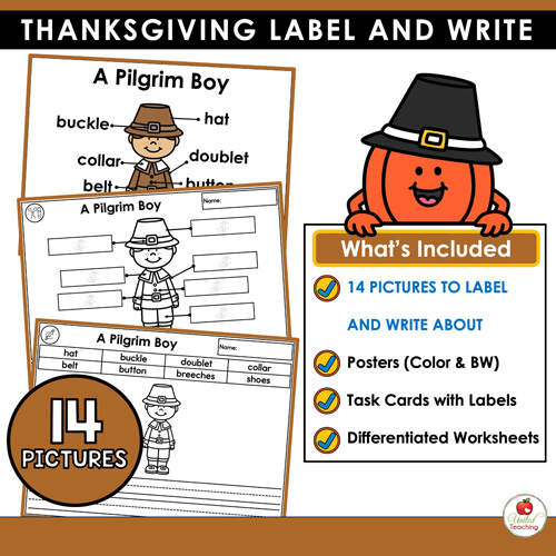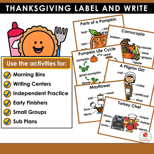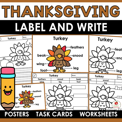 With this Thanksgiving Label and Write Packet, your students can explore festive themes while practicing labeling and writing skills. This resource gives children plenty of opportunities to build vocabulary, write sentences, and enjoy the season through colorful posters, task cards, and worksheets.