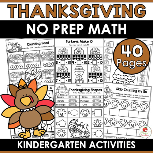 Looking for Thanksgiving Math Activities that keep your kindergarten students engaged and on track? This set of no-prep Thanksgiving math worksheets offers a mix of fun and learning with minimal prep. These November activities target essential kindergarten math skills and are perfect for math centers, morning work, substitutes, and early finishers. Just print, and you’re ready to go!