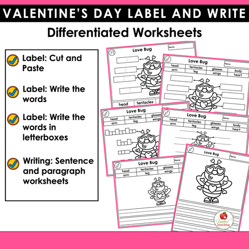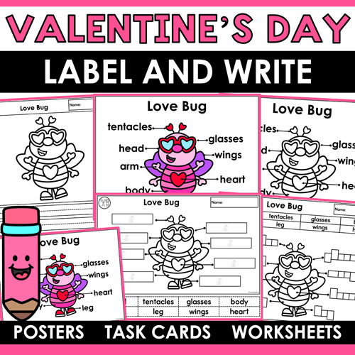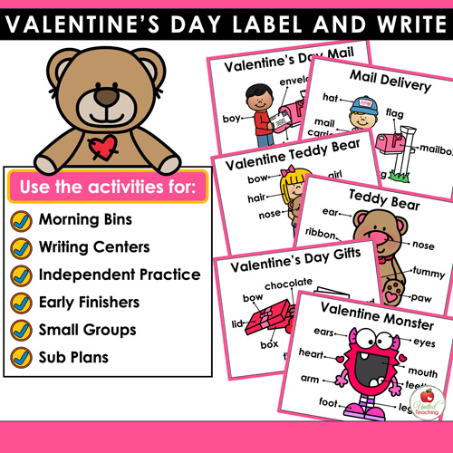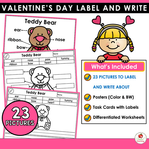 - 23 Task Cards – Featuring labeled Valentine’s-themed pictures to reinforce vocabulary and support writing ideas.