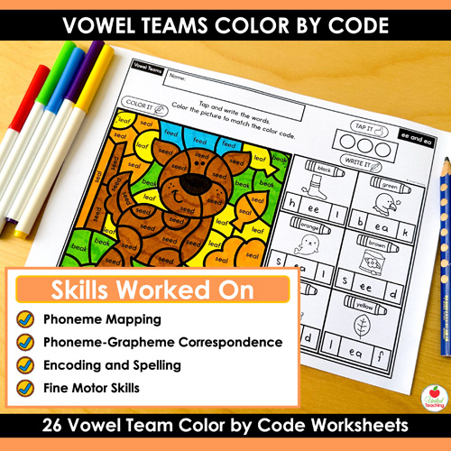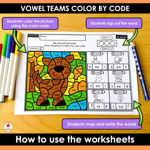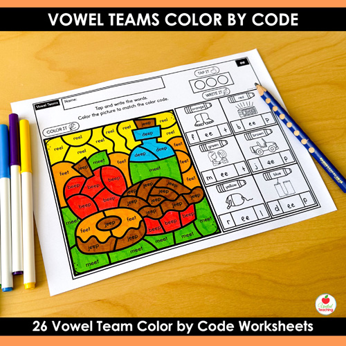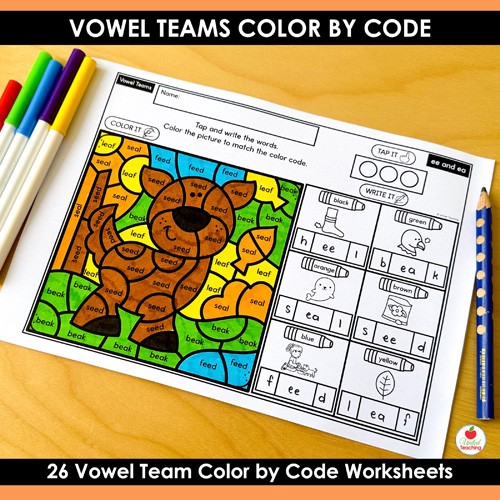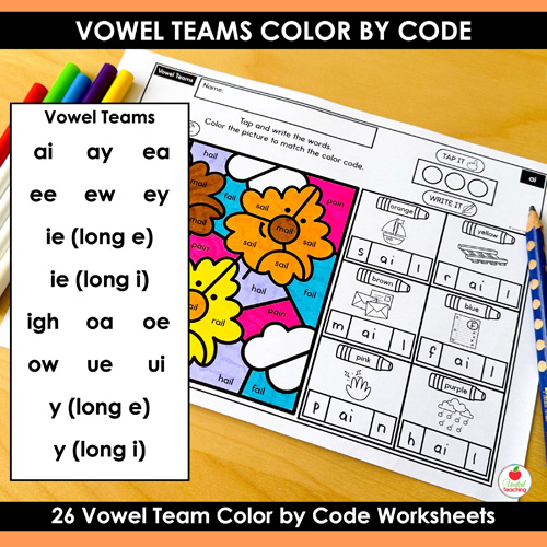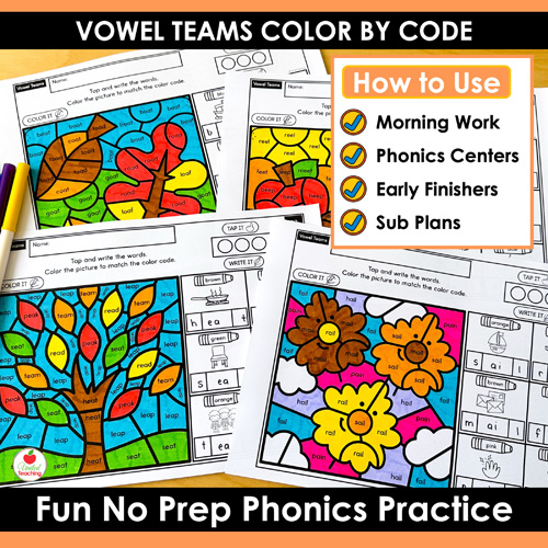 - Low Prep: Just print the vowel teams color by code worksheets and go!