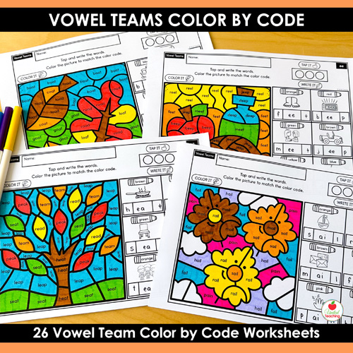 Make vowel team practice fun and effective with the Fall Color by Code Vowel Teams Worksheets—a timesaving, hands-on way to build strong readers through phonics and word mapping.