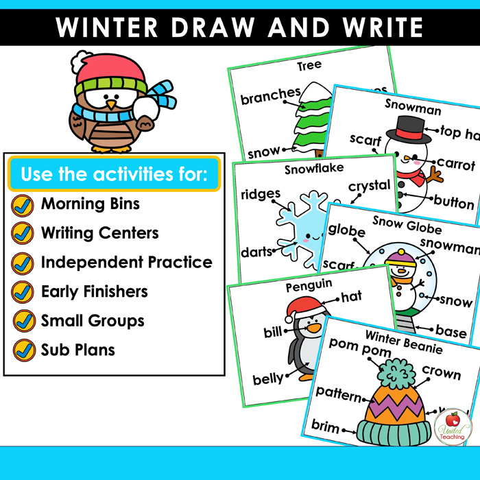 Boost Your Students’ Creativity and Writing Skill this Winter with the Winter Draw and Write Packet. The Winter Draw and Write resource is the perfect way to keep your students engaged and inspired during the winter months. This comprehensive pack combines fun, winter directed drawing with labeling practice to boost your students’ vocabulary, writing skills and imagination.