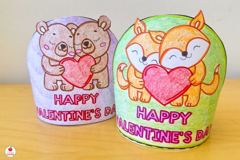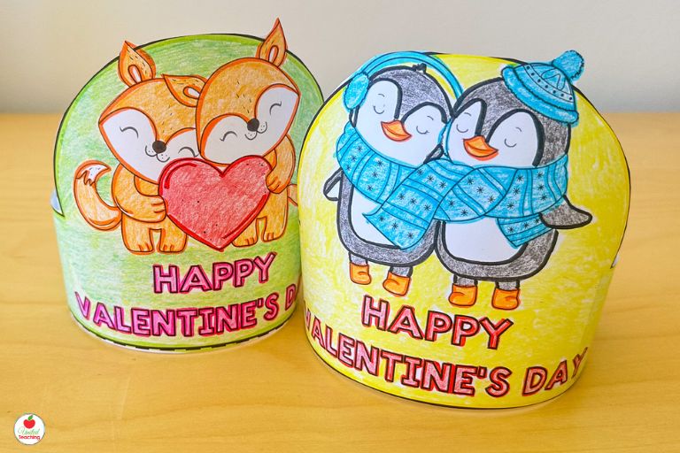 These Valentine’s Day crown crafts add a fun, hands-on element to your February activities while still being easy to manage in the classroom. Students can create and wear one of five adorable animal crowns featuring cute animal pairs, making this activity especially exciting for young learners. As students assemble and decorate their crowns, they can: